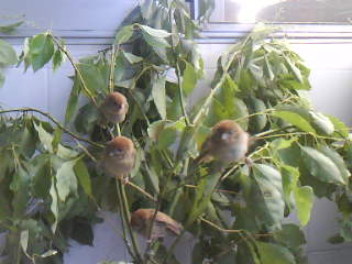 My Mom found the fledgings in an abandoned(or maybe the parents abandoned the nest becasue they saw human getting too close to it) nest in her field. Then we decided to keep them till they can fly and live on their own. They left one by one and the last one flew away on the last day of my college entrance exam.