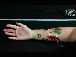 The first one is called EMG(electromyogram) sensor. This sensor can sense the electrical activity of the muscle. We used it in the project to sense if the user is gripping.